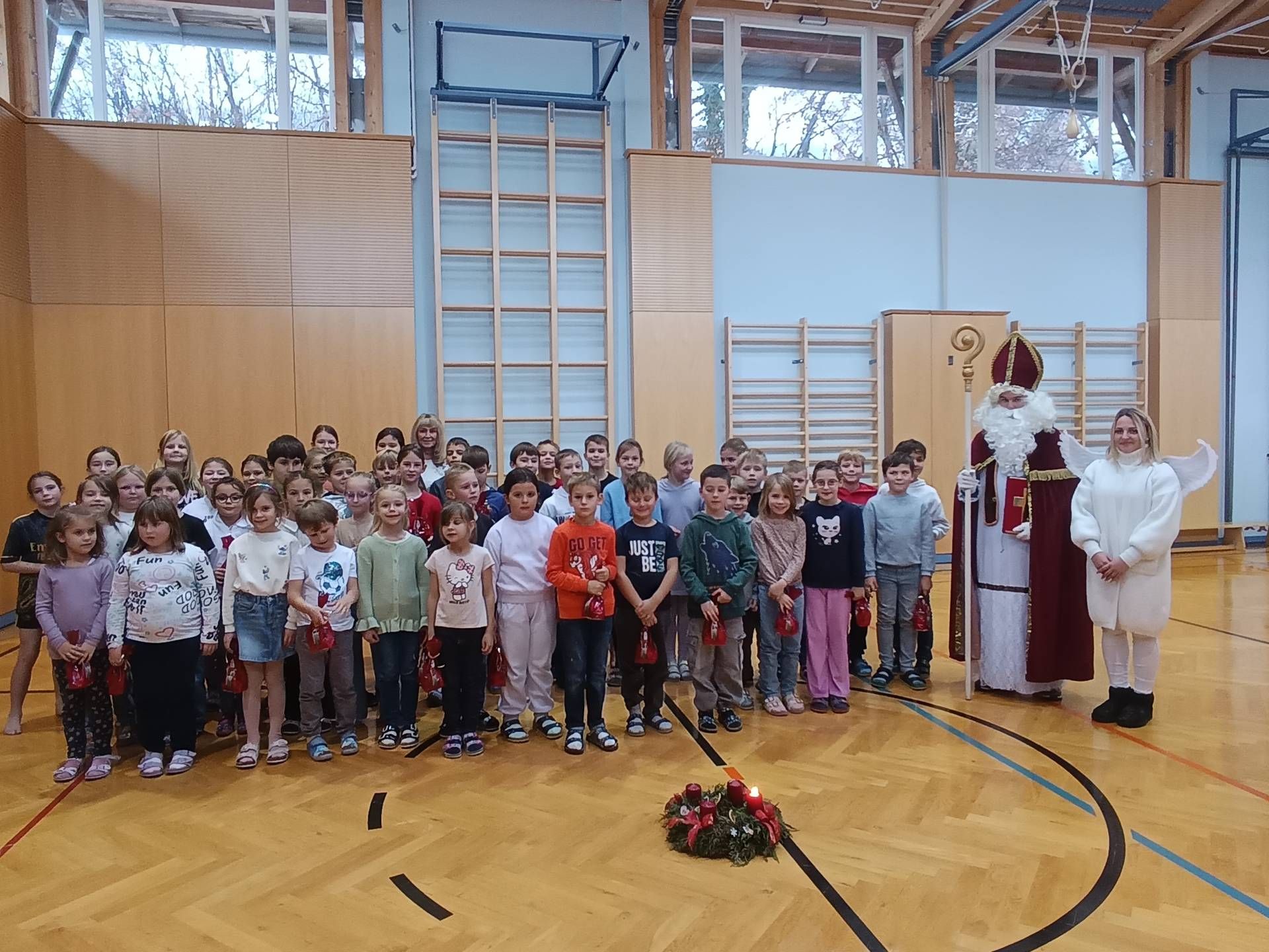 Am 05.12. war die Aufregung in der VS Lieserhofen sehr groß: Der Nikolaus besuchte unsere Schule, begleitet von einem lieben Engerl. Die beiden wurden von allen Kindern voller Vorfreude erwartet. Zur Begrüßung sang die ganze Schule das Lied „Lasst uns froh und munter sein“. Anschließend trug die 2. Klasse ein schönes Nikologedicht vor, das den hohen Besuch sehr beeindruckte. Zum Abschluss erhielt jedes Kind ein liebevoll gefülltes Sackerl vom Nikolaus. Es war eine stimmungsvolle kleine Feier, die uns noch lange in Erinnerung bleiben wird!