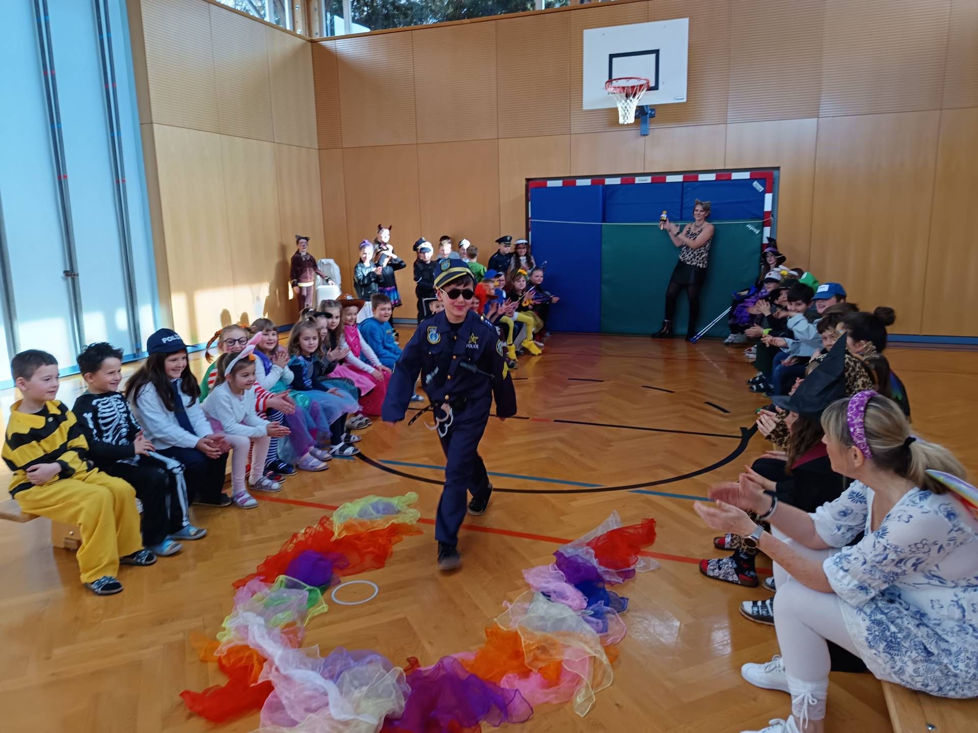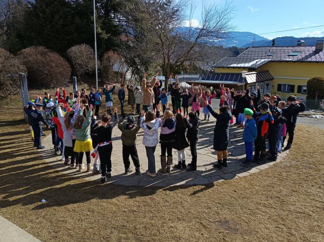 Am Faschingsdienstag wurde es in der Volksschule Lieserhofen bunt, fröhlich und richtig närrisch! Gleich in der Früh kamen die Kinder in ihren fantasievollen Kostümen zur Schule — von Prinzessinnen und Superhelden bis hin zu lustigen Tieren und kreativen Eigenkreationen war alles vertreten. Im Turnsaal fand anschließend die große Vorstellung der Kostüme statt. Jedes Kind durfte über den „Laufsteg“ gehen und sein Outfit präsentieren, begleitet von viel Applaus und fröhlicher Musik. Danach startete eine lange Polonaise durch den Saal, bei der sich alle klassenübergreifend anschlossen. Bei schwungvollen Tanzliedern wurde gemeinsam gelacht, gehüpft und getanzt, bis sich alle eine kleine Pause verdient hatten. Zur Stärkung gab es für jedes Kind einen köstlichen Faschingskrapfen — eine süße Überraschung, die natürlich für große Begeisterung sorgte. Zum Abschluss ging es noch einmal hinaus in den Schulgarten. Bei frischer Luft wurde weitergetanzt und gefeiert, bevor dieser fröhliche Vormittag viel zu schnell zu Ende ging. Es war ein rundum gelungenes Faschingsfest, das allen noch lange in Erinnerung bleiben wird!