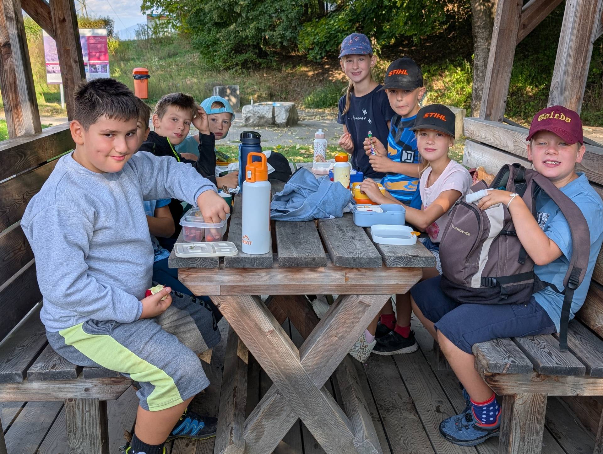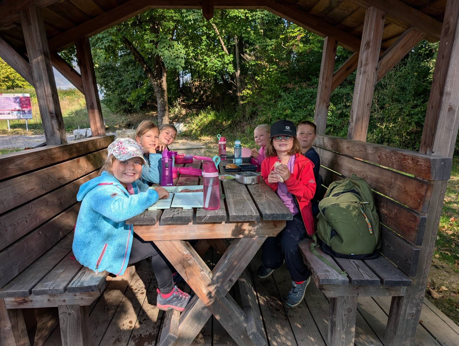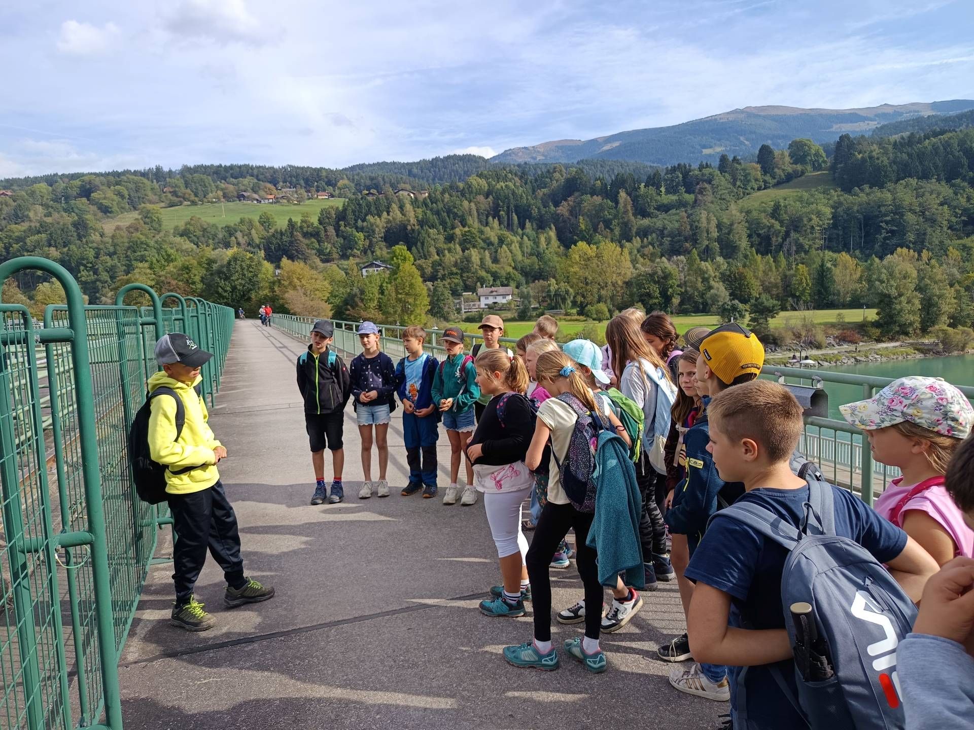 Am 22.09.2025 durfte die 3. und 4. Klasse hinaus in die Natur. Der erste Wandertag stand auf dem Programm. Begleitet wurden die Kinder von ihren Klassenlehrerinnen Fr. Derbuch und Fr. Six. Zunächst wurden die Umsteigertage der öffentlichen Verkehrsbetriebe genutzt. Gratis ging es mit dem Bus zum Bahnhof nach Spittal und von dort aus mit der Bahn weiter nach Feistritz. Bei bestem Wanderwetter erkundeten die Kinder den Radweg entlang der Drau. Unterwegs wurde zünftig gejausnet und auch zum Spielen blieb genügend Zeit. Ein Angler, den die Schülerinnen und Schüler unterwegs trafen, erklärte, welche Fische in unseren Gewässern beheimatet sind. Nach mehr als 10 Kilometern Fußweg erreichten alle müde aber glücklich Mauthbrücken, wo die Eltern ihre Kinder in Empfang nahmen.